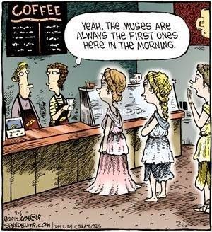 The third source of ideas is that tricksy, fickle wench, The Muse. That’s what we writers call the ideas, the dialogue, the descriptions that apparently download into our minds from a source unknown. We don’t just write about what we know, we insist, we also write about what we haven’t lived, or seen or heard. We imagine. We create. We just damn well make things up, ok?